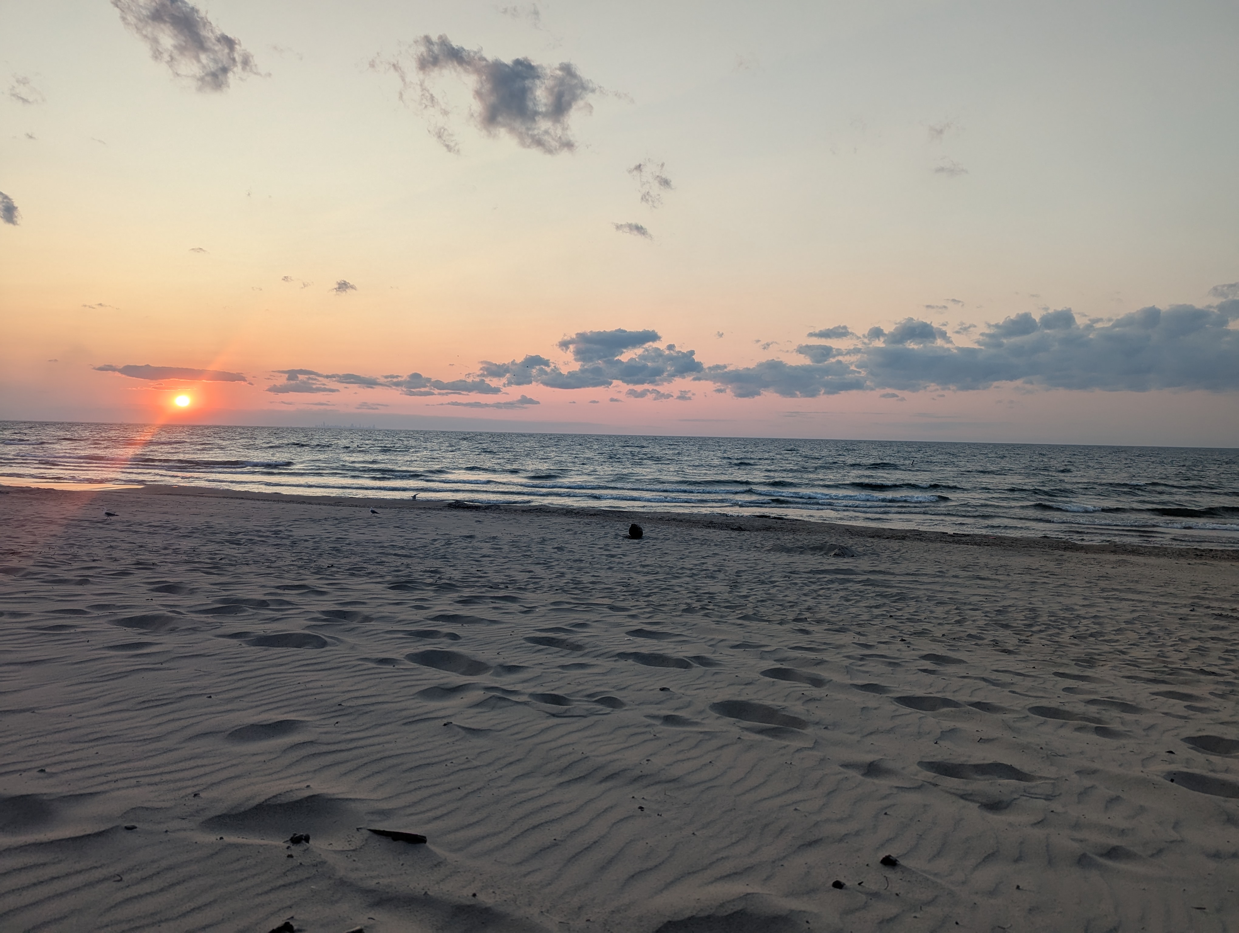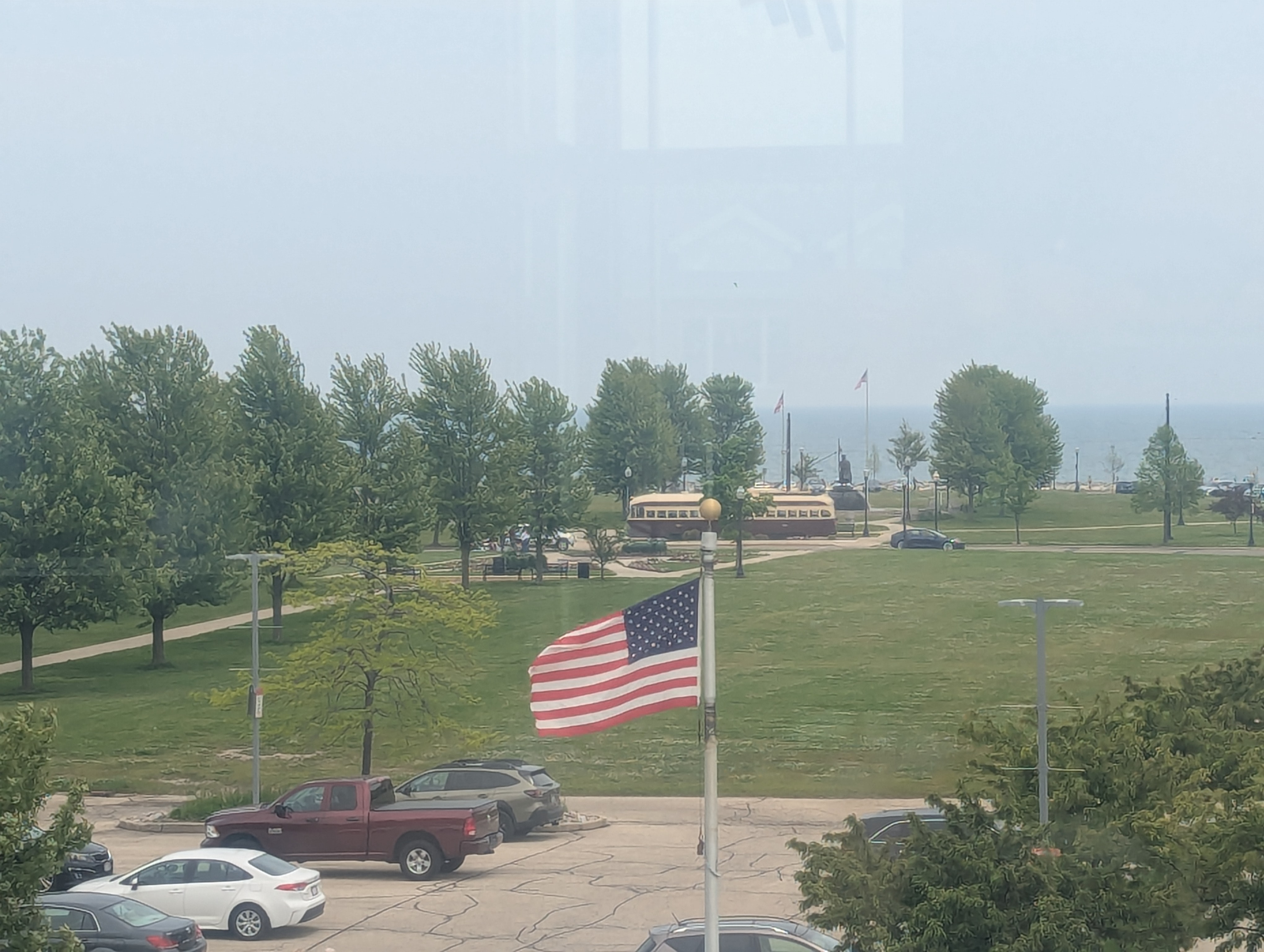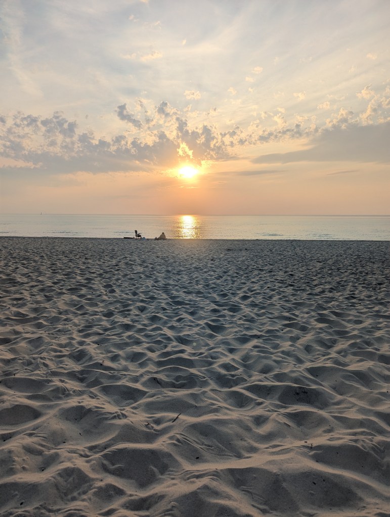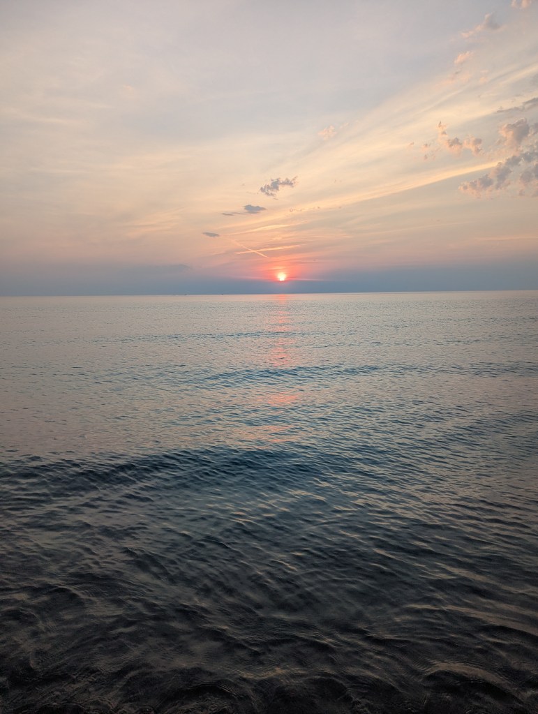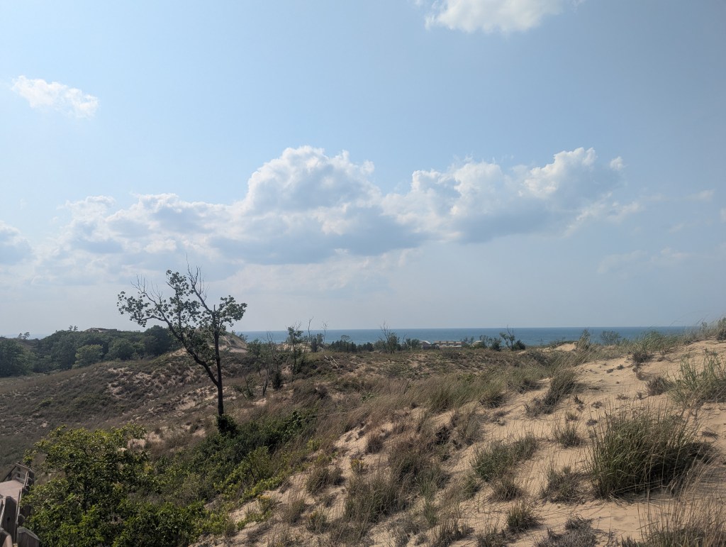 Then I drove to Kenosha. Lake Michigan is gorgeous. And the only drawback was that smoke is pooling from Canadian wildfires and it was hazy, but I was glad to be there.