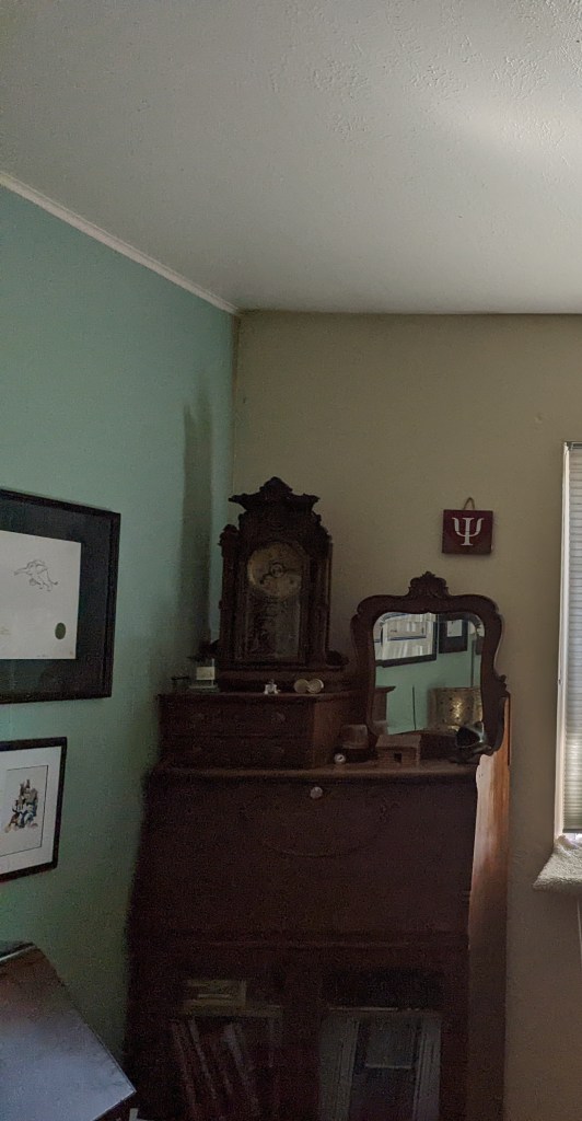 Dresser #2 was my Mom’s. It’s cool. It’s made of heavy old wood and has three long drawers. I need to get it to the non-profit recycler, but don’t know how. I’m not sentimental. I do remember her having probably 20 plants on top of it when I was 19 all the way through when she went into a nursing home. Both my parents had green thumbs.